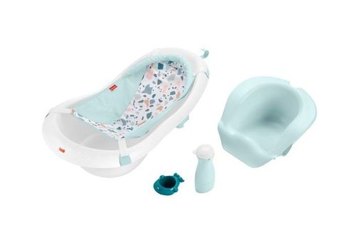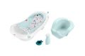 Jakmile se z novorozence stane batole, změní se čas koupání z obyčejného namáčení na pirátské dobrodružství na širém moři a na cestu k tajemnému gejzíru, který střeží velryba! Vanička Fisher-Price® 4 v 1 se závěsným lehátkem a sedátkem to všechno zvládne. Od podpůrného síťovaného závěsu vytvořeného pro první koupání miminka až po velrybu a gejzír - nebo jsou to lopatka a oplachovací láhev? Tato dětská vanička má čtyři stupně, které se přizpůsobí od novorozence až po batole.