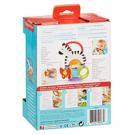 Připněte tuto roztomilou zebru k dětskému pultíku a vzrušující hra se smysly může začít! Svými černobílými pruhy, rukojetí sloužící jako kousátko a chrasticí nádobkou plnou barevných kuliček zabaví tato nová kamarádka vaše miminko kdekoli a kdykoli! Pro j