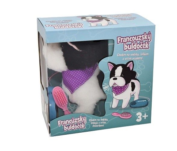 Roztomilý plyšový buldoček na vodíku, který čeká, že s tebou vyrazí na procházku. Pejsem štěká, vrtí ocáskem, chodí.Provoz hračky na 4xAA baterie nejsou v balení.