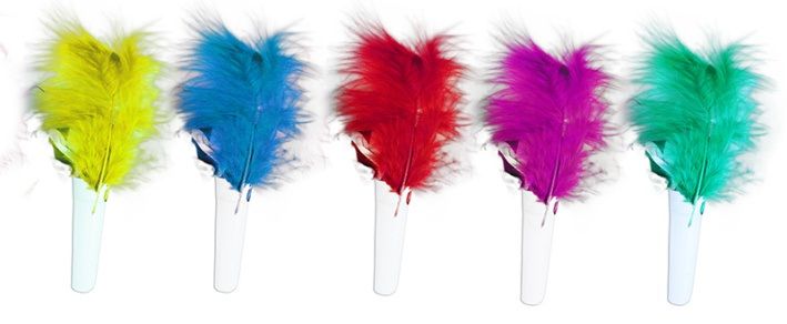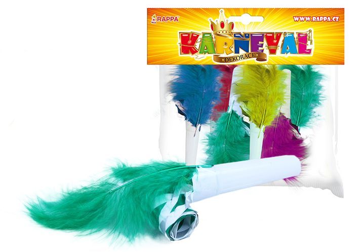 Veselé papírové frkačky s barevným motivem a peřím jsou senzačním doplňkem na oslavu, večírek nebo ples! Tyto parádní frkačky nabízíme v balení po 6 kusech.