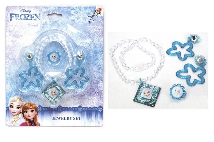 Všechny šperky mají ledově modoru barvu. Na náhrdelníku je přívěsek s obrázkem princezny. Náušnice jsou třpytivé a mají tvar vločky. Na prstýnku je také obrázek princezny.