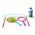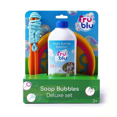 Set obsahuje šňůru pro obrovské bubliny, velkou obruč, "stromek" s 12 dírkami, tácek a 0,4L náhradní náplně.Bubliny FRU BLU dosahují obrovských rozměrů a mají neskutečné tvary. Září všemi barvy duhy. Bubliny FRU BLU vznikají díky speciální tekutině, která je produkovaná v EU. Jsou trvanlivé a jen tak neprasknou.