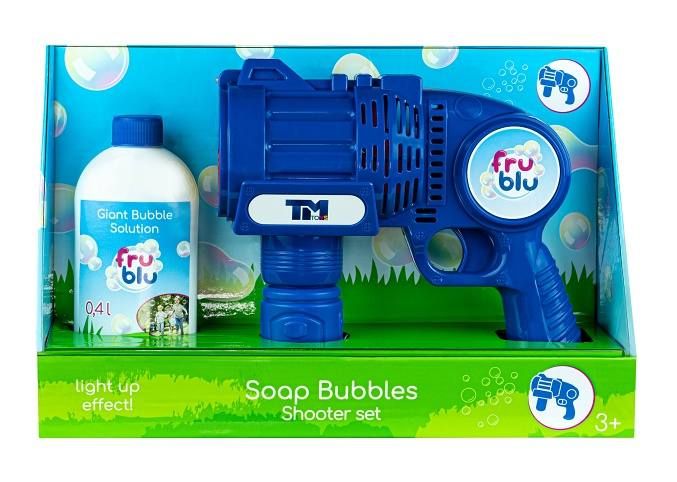 FRU BLU MEGA BLASTER - miliony bublinek vystřelujících s obrovskou rychlostí. Navíc se světelnými efekty pro ještě více zábavy. Blaster má zásobník na tekutinu, díky kterému je bublinování ještě rychlejší a snadnější. Ideální pro hru venku a v interiéru. V balení s 0,4l náplně.Bubliny FRU BLU dosahují obrovských rozměrů a mají neskutečné tvary. Září všemi barvy duhy. Bubliny FRU BLU vznikají díky speciální tekutině, která je produkovaná v EU. Jsou trvanlivé a jen tak neprasknou.