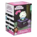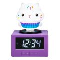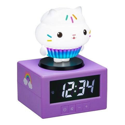 Gabby budík je navržen jako veselý a hravý pomocník pro děti, který jim usnadní vstávání každé ráno. Jeho hlavní součástí je fialový základ ve tvaru krychle, na kterém je umístěna postavička ve tvaru roztomilého kočičího cupcakes. Tato figurka je bílá s barevnými zdobeními připomínajícími posyp na sladkém dezertu, což dodává budíku příjemný a hravý vzhled vhodný do dětského pokoje. Na boku základny je pak veselá nálepka duha s mráčky, která podtrhuje hravost celého designu. Digitální displej na přední straně budíku je přehledný a dobře čitelný díky velkým bílým číslicím na černém pozadí. Pod displejem se nachází ovládací tlačítka, která umožňují nastavení času a budíku, stejně jako aktivaci nočního světla. Unikátní funkcí je možnost odložení budíku nebo zapnutí nočního světla jednoduchým poklepáním na hlavu postavičky Gabby. Toto praktické řešení je ideální pro děti, které si tak mohou samy snadno odložit budík nebo rozsvítit jemné světlo. Budík je napájen třemi bateriemi typu AA, které nejsou součástí balení, což umožňuje flexibilní použití bez nutnosti stálého připojení k elektrické síti. Díky kompaktním rozměrům a stabilnímu podstavci je Gabby budík vhodný na noční stolek, kde může být nejen praktickým pomocníkem při vstávání, ale i milým doplňkem dětského pokoje. Celkově je tento budík skvělou volbou pro rodiče, kteří hledají zábavný a funkční produkt, který dětem zpříjemní ranní vstávání. Na baterie: 3x AA (nejsou součástí balení)