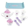 Souprava pro servírování čaje s tácem Gabby‚s Dollhouse. Obsahuje 8 ks příslušenství: tác, 2 šálky, dvě lžíce, konvičku na čaj, cukřenku s pokličkou a konvičku na mléko. Rozměry tácu 26 x 14,2 x 2,6 cm. Hmotnost: 0,197 kg.