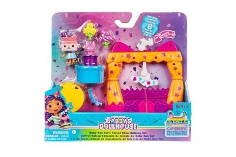 Vstupte do světa Gábinina kouzelného domku se soupravou kočičky Krabičky a jejím kouzelnickým balkónkem! Obsahuje 5cm figurku kočičky Krabičky, nábytek pro panenky a 6 doplňků pro panenky, včetně kouzelného klobouku a přívěsky na balkon! Zavěste balkón na okna kouzelného domku, poté rozbalte zásilku z kouzelného domku a odhalte hračku s překvapením – přívěsek mrkve! Naskenujte QR kód, který je uvnitř krabičky s překvapením, a odemkněte si speciální odměnu v bezplatné aplikaci Gábinin kouzelný domek (k dispozici pro iOS a Android). Hračky Gábinin kouzelný domek pro dívky a chlapce jsou skvělými dárky pro všechny děti, které jsou fanoušky tohoto seriálového hitu od Netflixu a rádi si hrají s domečky pro panenky. Zajistěte jim nezapomenutelný zážitek se světem roztomilých figurek, doplňků a nábytku do kouzelného domku, které mohou sbírat a libovolně skládat! Postavte si vlastní svět se základními stavebnicemi, jako je kuchyňka na hraní nebo hudební místnost, a spoustou sběratelských předmětů, jako je úžasná výletní loď, bazén pro mořské panny nebo zbrusu nová souprava Párty pokoj – podkroví kouzelného domku s krytým skateparkem a roztomiloučkými balkónky s mini antistresovými hračkami, které poskytují uspokojivou senzorickou hru a lze je bezproblémově zkombinovat s oběma verzemi kouzelného domku!