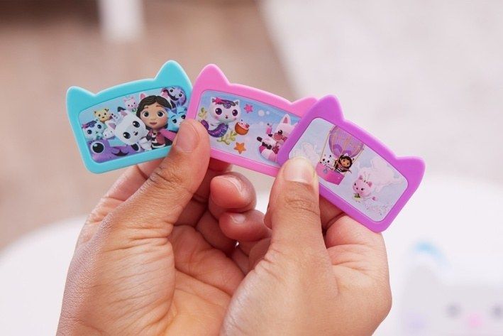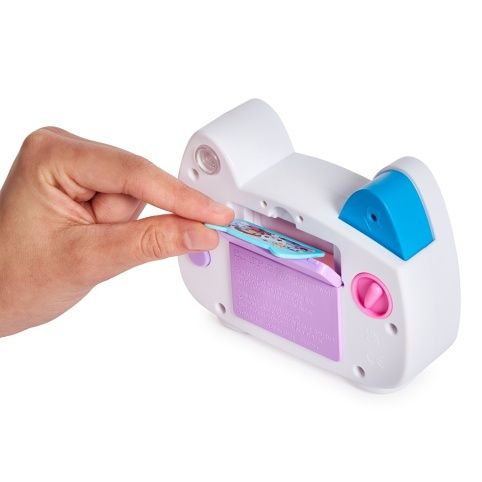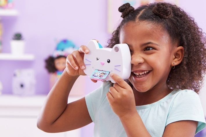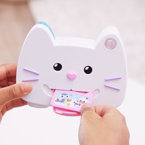 Řekněte sýr s fotoaparátem Gabby’s Dollhouse Kitty Camera. Užijte si velkou kočičí zábavu hrou na focení se svými chlupatými kamarády (figurky a hrací sady se prodávají samostatně). Tento hrací fotoaparát v životní velikosti má autentický design a styl jako v seriálu Gábinin kouzelný domek a jeho fanoušky nepochybně okouzlí. Stačí otevřít panel na zadní straně fotoaparátu a vložit tři plastové fotografie. Potom se podívejte do hledáčku, řekněte sýr a stiskněte tlačítko. Kočička mrkne a na jazyku se jí objeví fotka. Na fotoaparátu jsou také barevná tlačítka, která se dají mačkat a kterými můžete otáčet, takže poslouží jako roztomilá hračka pro neklidné ruce. A pokud chcete zažít ještě jedno překvapení, naskenujte QR kód na straně produktu a nainstalujte si bezplatnou aplikaci Gabby’s Dollhouse (dostupná pro iOS a Android). Plyšáci, panenky, figurky a hrací sady Gabby’s Dollhouse jsou ideálními hračkami pro předškoláky, kteří ve své fantazii rádi zažívají imaginární dobrodružství. Pokud chcete zažít ještě víc vzrušujících her, vyzkoušejte kuchyni „Cakey“ a troubu „Bakey with Cakey“, která svět kouzelného domku ještě více rozšíří. Přineste si domů super roztomilý fotoaparát na hraní a předstírejte, že fotíte stejně jako Gábina s Gabby’s Dollhouse Kitty Camera.