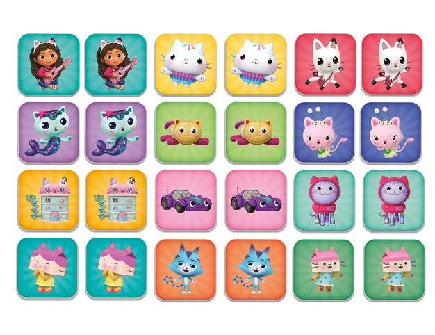 Gábinin kouzelný domek Pexeso. Obsahuje 24 kartonových kartiček s motivy seriálu. 12 párů.