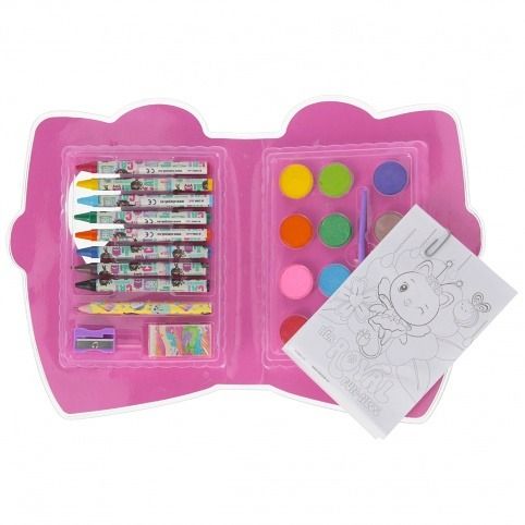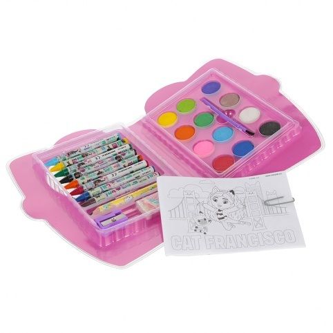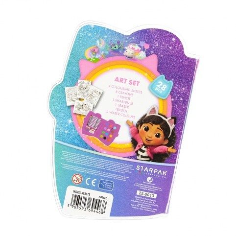 Sada školních potřeb z kolekce STARPAK s licencí Gabbyho Dollhouse the Movie pro malé umělce, která jim pomáhá rozvíjet kreativitu a poznávat nové malířské techniky. Sada se skládá z 28 prvků: 8 voskových pastelek a ořezávátka, tužky, mazací gumy, palety na malování a 4 listů s náčrtem k vybarvování. Všechny prvky sady jsou vyrobeny z vysoce kvalitních materiálů, což zajistí dlouhodobé používání.