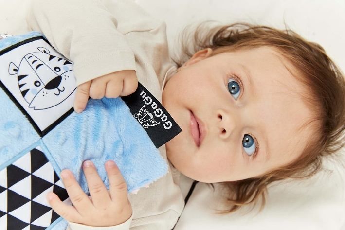 Dečka má kontrastní barvy a vzory, což stimuluje zrak dítěte a šustivý materiál uvnitř hračky stimuluje jeho sluch. Dítě má možnost poznávat různé textury, díky kterým si rozvíjí hmat. Doplňkové stuhy, plyšová poutka, velký štítek - usnadňují dítěti uchopení hračky a podporují tzv. cvičení jemné motorické dovednosti (pohyby prstů a rukou). Dečka je oboustranná - na každé straně má jinou grafiku: na jedné straně ovce - na druhé tygr. Hračka je velmi lehká a šikovná, snadno skladná, ideální na procházku nebo výlet. Informace o prodktu (v bodech):• kontrastní barvy a vzory – stimulují zrak dítěte• různé textury materiálu – stimulace hmatu• šustivý materiál – rozvoj sluchu• různé prvky (stuhy, poutka, štítek) - podpora jemné motoriky (pohyby prstů a rukou)• lehká a šikovná hračka – na procházku, domů nebo na cesty• žádné plastové díly• lze kombinovat s dalšími produkty GaGaGu.