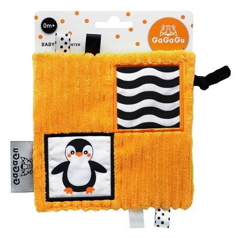 Dečka má kontrastní barvy a vzory, což stimuluje zrak dítěte a šustivý materiál uvnitř hračky stimuluje jeho sluch. Dítě má možnost poznávat různé textury, díky kterým si rozvíjí hmat. Doplňkové stuhy, plyšová poutka, velký štítek - usnadňují dítěti uchopení hračky a podporují tzv. cvičení jemné motorické dovednosti (pohyby prstů a rukou). Dečka je oboustranná - na každé straně má jinou grafiku: na jedné straně tučňák - na druhé mýval. Hračka je velmi lehká a šikovná, snadno skladná, ideální na procházku nebo výlet. Je určena pro děti ve věku 0m + a je jedním z 12 produktů dostupných pod značkou GaGaGu. Kromě dečky jsou to i chrastítka, spirála, přívěsky, knížky, smyslové kostky a smyslová podložka.Informace o prodktu (v bodech):• kontrastní barvy a vzory – stimulují zrak dítěte• různé textury materiálu – stimulace hmatu• šustivý materiál – rozvoj sluchu