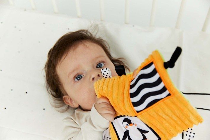 Dečka má kontrastní barvy a vzory, což stimuluje zrak dítěte a šustivý materiál uvnitř hračky stimuluje jeho sluch. Dítě má možnost poznávat různé textury, díky kterým si rozvíjí hmat. Doplňkové stuhy, plyšová poutka, velký štítek - usnadňují dítěti uchopení hračky a podporují tzv. cvičení jemné motorické dovednosti (pohyby prstů a rukou). Dečka je oboustranná - na každé straně má jinou grafiku: na jedné straně tučňák - na druhé mýval. Hračka je velmi lehká a šikovná, snadno skladná, ideální na procházku nebo výlet. Je určena pro děti ve věku 0m + a je jedním z 12 produktů dostupných pod značkou GaGaGu. Kromě dečky jsou to i chrastítka, spirála, přívěsky, knížky, smyslové kostky a smyslová podložka.Informace o prodktu (v bodech):• kontrastní barvy a vzory – stimulují zrak dítěte• různé textury materiálu – stimulace hmatu• šustivý materiál – rozvoj sluchu