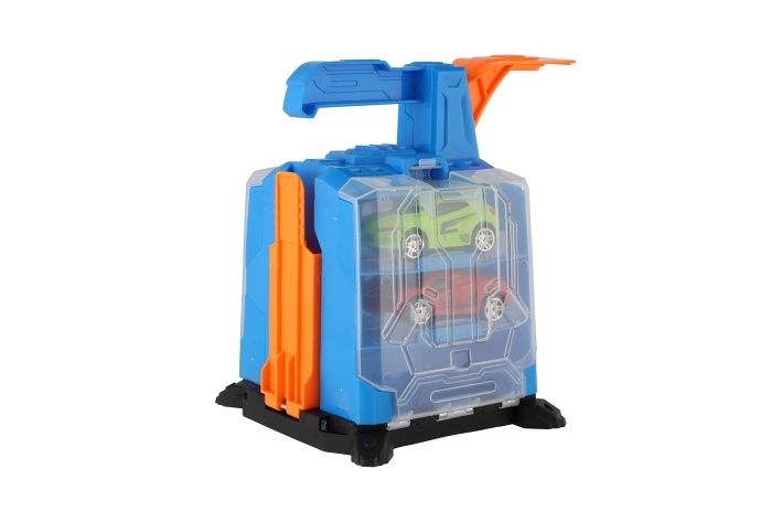 Zábava může začít! Kompaktní plastová garáž s vystřelovacím mechanismem poskytuje akční start pro dvě přiložená autíčka. Stačí je nasadit, zmáčknout a pozorovat, jak vyrazí do závodu! Ideální hračka pro malé motoristy, která rozvíjí postřeh, koordinaci i fantazii.