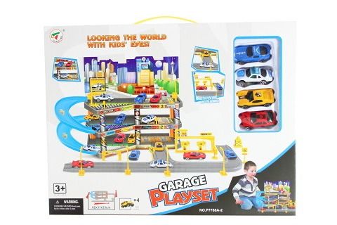 Garáž o velikosti 62 x 31 x 33 cm. Součástí balení jsou 4 autíčka. Rozměr balení cca 45,5 x 35 x 6 cm. Věk 3+