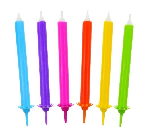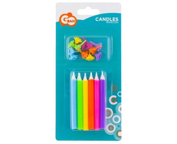 Dortové svíčky Rainbow, 8 cm, 12 ks + 12 podstavců