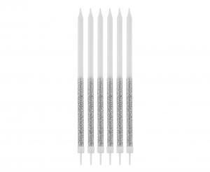 Dortové bílé svíčky s brokátem o délce 14,5 cm. V balení 16 ks.