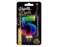 Duhová dortová svíčka č. 5 s metalickým leskem.