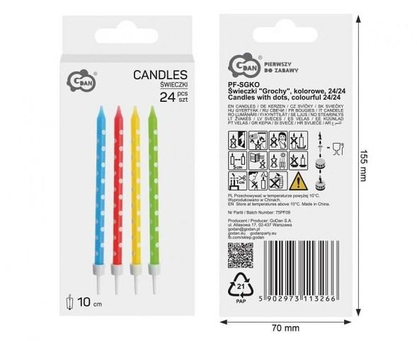 GD Svíčky dortové PUNTÍK 10cm 24 ks bare