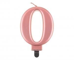Růžová dortová svíčka č. 0 s metalickým leskem.