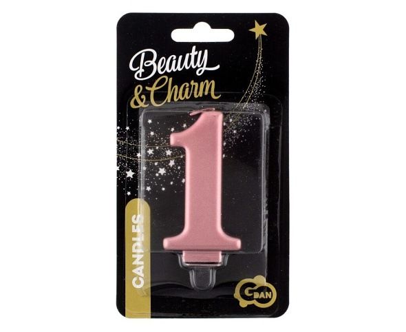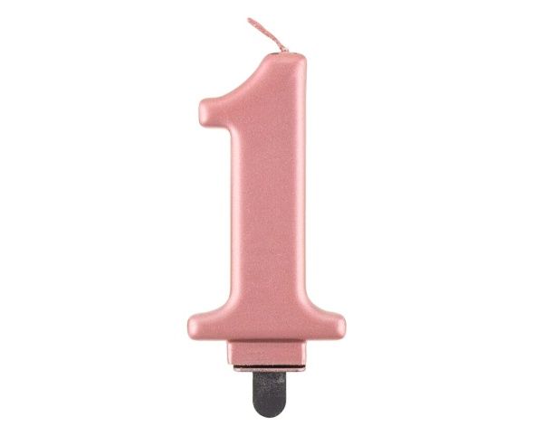 Starorůžová dortová svíčka č. 1 s metalickým leskem.