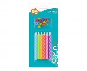 Dortové svíčky Spirala s podstavcem, 12 ks, 8 cm.
