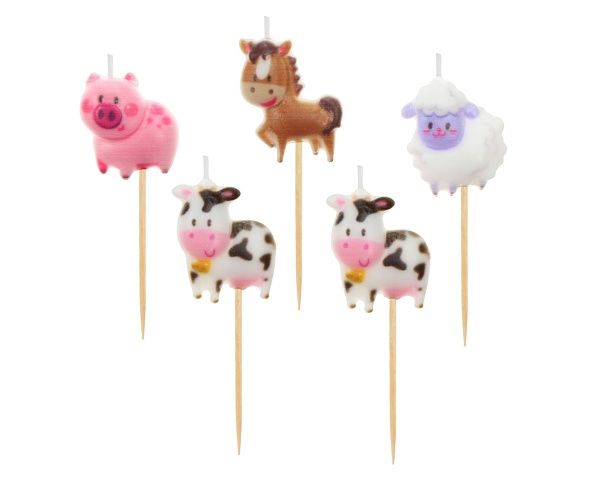Dortové svíčky s motivy zvířátek z farmy.