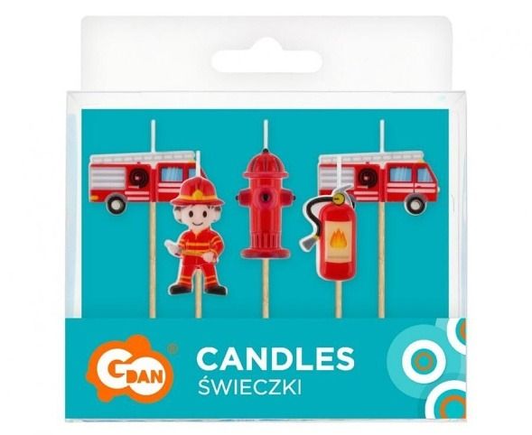 Sada dortových svíček s hasičským motivem.