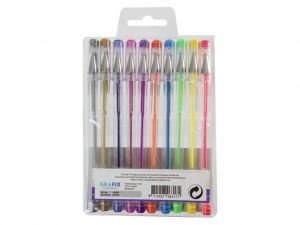 Gelová pera 10 ks, balení obsahuje – 6 ks neonových, 2 ks třpytivých a 2 ks metalických.