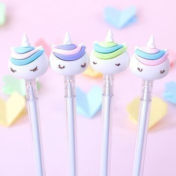 Propiska s gelovou náplní, skvěle píše. Módni design kulatý jednorožeč, mix barev, viz obrázek.