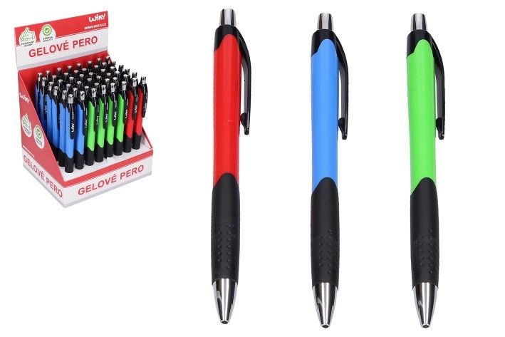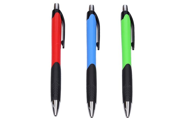 Propisovací pero moderního vzhledu s modrou náplní ve 4 barevných provedeních.