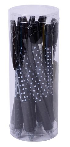 Gelové pero s gumovým úchopem, černá barva těla odpovídá barvě náplně. Nápaditý tečkovaný potisk. Šíře hrotu 0,5mm.