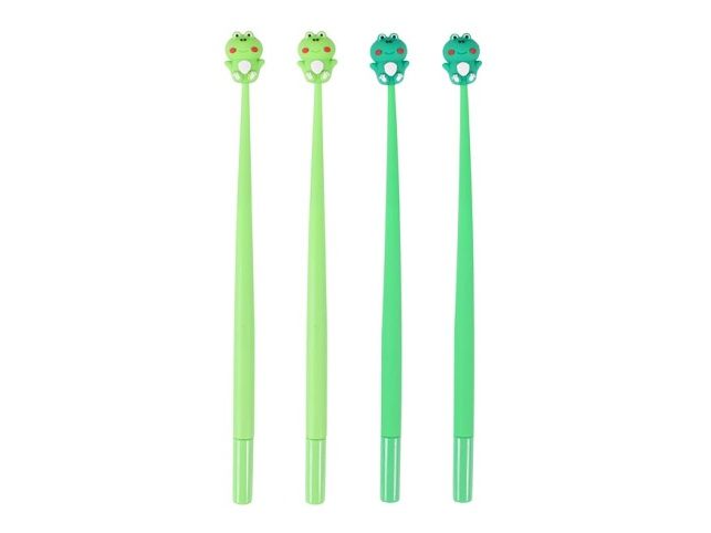 Gelové pero Fancy - Little frog s modrou náplní a motivem žabek je ideálním společníkem pro každodenní psaní, a to nejen pro děti, ale i dospělé. Je perfektní na zapisování poznámek, vedení deníku nebo i na běžné úkoly ve škole či v kanceláři. Jemný hrot s šíří stopy 0,5 mm zajišťuje plynulé a pohodlné psaní. Pero je vybaveno víčkem pro ochranu hrotu před poškozením a má tělo z pružného, odolného plastu, příjemného na držení. Hodí se i jako milý dárek pro všechny milovníky roztomilých doplňků. Motiv: žába Hrot: 0,5 mm Počet kusů v balení: 48 ks Barva: světle zelená, zelená VAROVÁNÍ: Nevhodné pro děti do 3 let. Nebezpečí vdechnutí a spolknutí malých částic. Uvedená cena je za 1 ks.