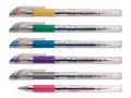 Set 6 ks gelových per v GLITTROVÝCH barvách s hrotem 1 mm. Vhodná pro školní, kancelářské, ale i domácí použití. Gelové pero má pogumovaný úchop, a tak zabraňuje klouzání v ruce.Délka: 150 mmNáplň: 5400152 Provedení: s vrškemPočet ks v balení: 6 ksBarva: stříbrná, fialová, modrá, zelená, žlutá, růžováDodáváme v plastovém pouzdru.Uvedená cena je za 1 balení.