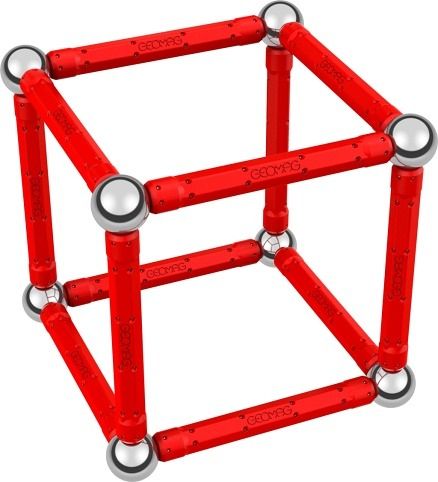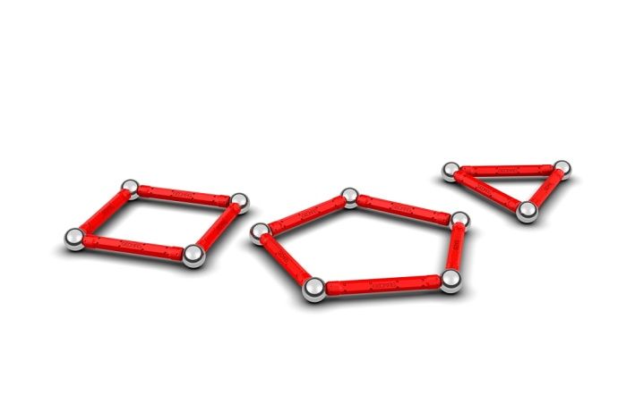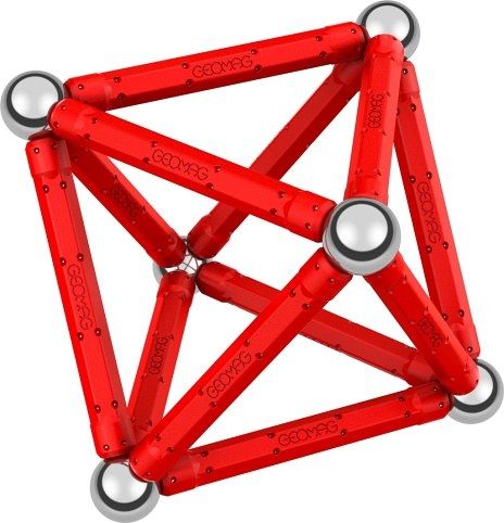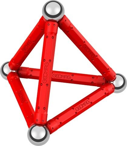 Naučte se stavět geometrické tvary i tělesa s pomocí magnetické stavebnice Geomag. Obsahuje 12 červených magnetických tyček a 12 ocelových kuliček.
