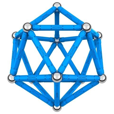 Naučte se stavět geometrické tvary i tělesa s pomocí magnetické stavebnice Geomag. Obsahuje 32 modrých magnetických tyček a 16 ocelových kuliček.