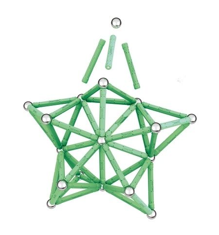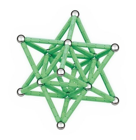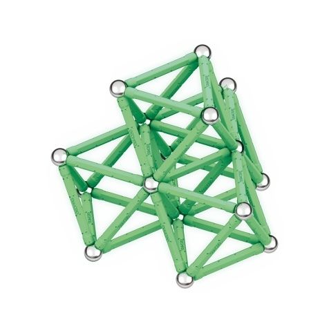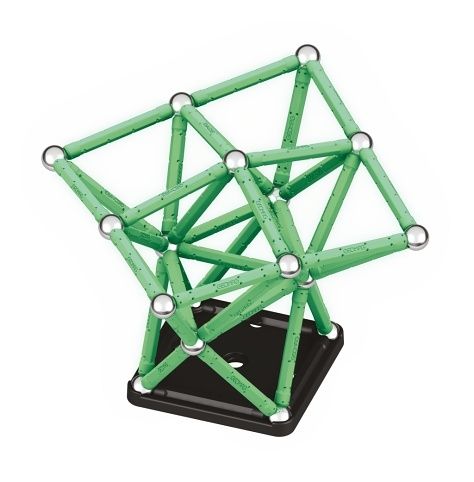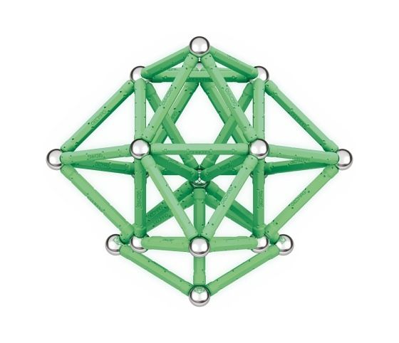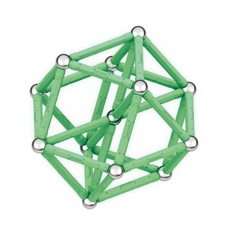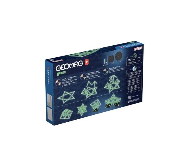 Největší magnetická stavebnice z řady Glow. Potahy tyček po nasvícení září ve tmě. Všechny plastové dílky jsou vyrobeny ze 100% recyklovaného materiálu včetně 4 praktických úložných boxů. Obsahuje 44 magnetických tyček, 44 ocelových kuliček, 2 čtvercové podstavce a 2 pětiúhelníkové podstavce. Vhodné od 3 let.