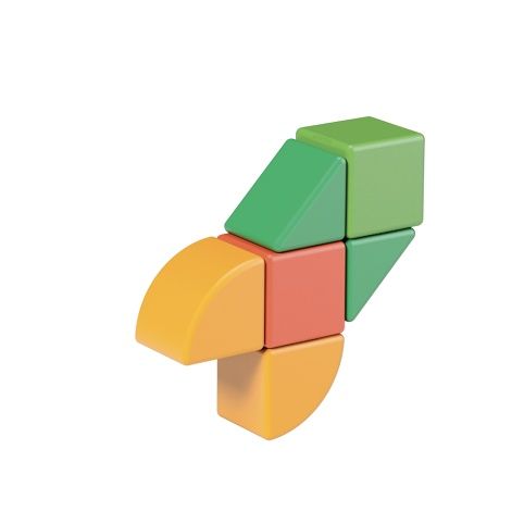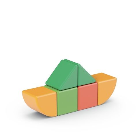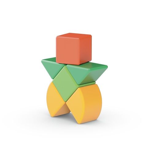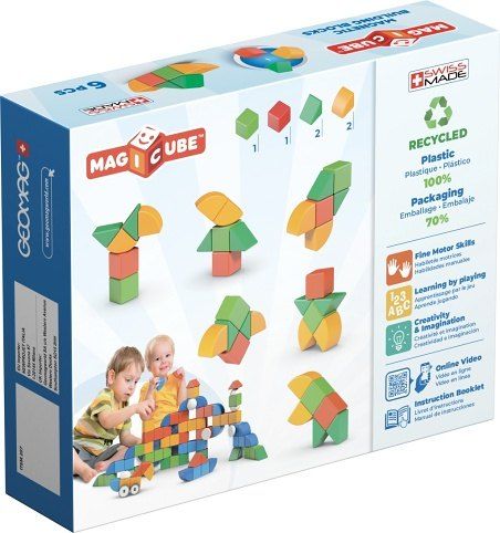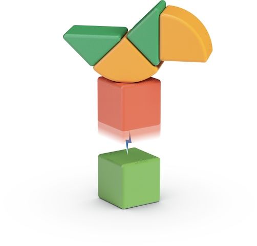 Kromě magnetických krychliček jsou součástí této sady také další dva magnetické tvary. Obsahuje 6 dílků. Vhodné od 1 roku.