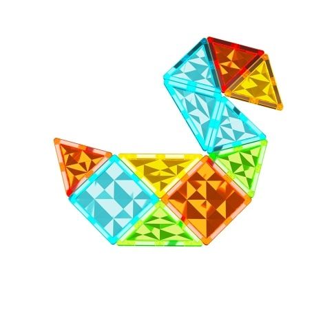 Geomag Magnetic Tiles 32 dílků představují kreativní stavebnici, která umožňuje dětem vytvářet různé 2D obrazce i 3D struktury pomocí magnetických dílků. Každý dílek je opatřen magnety na všech stranách, což zajišťuje snadné a pevné spojení mezi jednotlivými tvary. Díky průhlednému plastovému materiálu s výraznou strukturou se stavebnice pyšní atraktivním barevným vzhledem v odstínech červené, žluté, zelené a modré, které podněcují dětskou fantazii a pomáhají rozvíjet znalosti o barvách a tvarech. Sada obsahuje celkem 32 dílků, mezi nimiž najdeme 14 čtverců, 10 rovnostranných trojúhelníků, 4 rovnoramenné trojúhelníky a 4 pravoúhlé trojúhelníky. Díky této rozmanitosti tvarů a barev mohou děti vytvářet nejen plošné kompozice, ale také složité prostorové modely, například zvířata, budovy nebo abstraktní konstrukce. Stavebnice je vhodná pro děti od 3 let, přičemž podporuje jemnou motoriku, kreativní myšlení a logické uvažování. Balení je prakticky řešené v modré krabici, na jejímž zadním i předním panelu jsou ukázky možných konstrukcí a přehled jednotlivých dílků. Obal zároveň zdůrazňuje bezpečnost hračky a její přínos pro rozvoj tvořivosti a manuálních dovedností, což je potvrzeno i symboly STEM vzdělávání. Díky kvalitnímu zpracování a robustnímu materiálu je tato stavebnice trvanlivá a vhodná i pro časté používání. Geomag Magnetic Tiles jsou tak vhodným nástrojem pro zábavné učení a rozvoj dětských schopností.