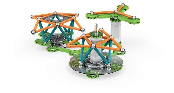 Zkus použít klasické Geomag kuličky jako ložiska a vytvoř si modely, které jen pomocí samotné magnetické síly rozpohybuješ! Postavíš víc menších modelů nebo jeden velký? Bude tě to bavit! Stavebnice obsahuje celkem 160 dílků. Všechny barevné plastové části stavebnice jsou z recyklovaného plastu. Doporučeno pro děti od 7 let.