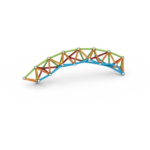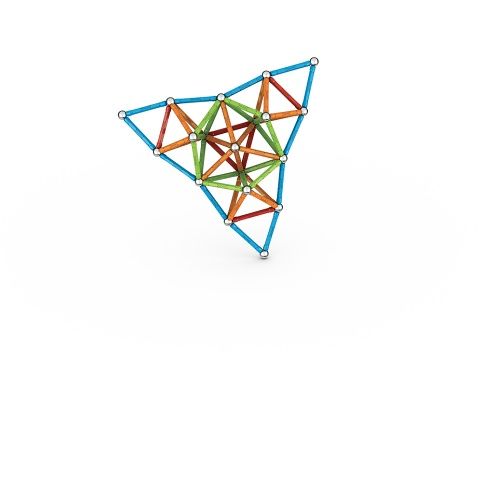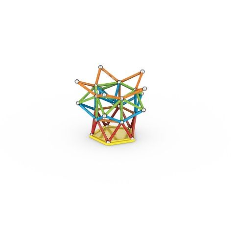 Velká sada složená z 68 magnetických tyček ve čtyřech barvách, 68 ocelových kuliček, tří čtvercových a tří pětiúhelníkových žlutých podstavců. Vhodné od 3 let.
