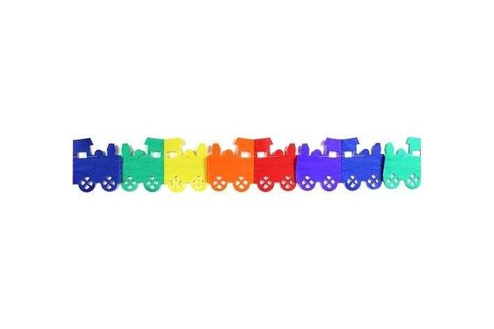 Girlanda papírová - vláček - 9014. Papírová dekorace vhodná na různé oslavy, karnevaly apod. Rozměr: 400 x 17 x 18 cm. Různé barvy. Upozornění: Některé varianty nemusí být v průběhu roku k dispozici, zboží bude dodáváno dle aktuálních skladových zásob.