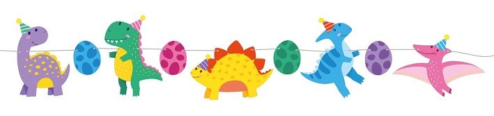Papírová girlanda dinosauři Girlandu využijete na tématickou párty, dětskou oslavu nebo třeba jako dekoraci do pokojíčku. Délka girlandy je 250 cm a obsahuje 9 kusů obrázků.