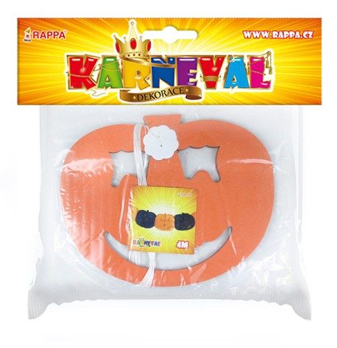Stylová girlanda je perfektní ozdobou sálů a večírků v období Halloweenu! Černo-oranžová gerlandina s veselými dýněmi je vyrobena z papíru.
