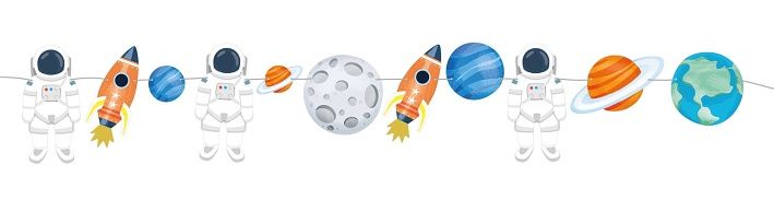Papírová girlanda vesmír Girlandu využijete na tématickou párty, dětskou oslavu nebo třeba jako dekoraci do pokojíčku. Délka girlandy je 250 cm a obsahuje 11 kusů obrázků s vesmírnou tématikou.