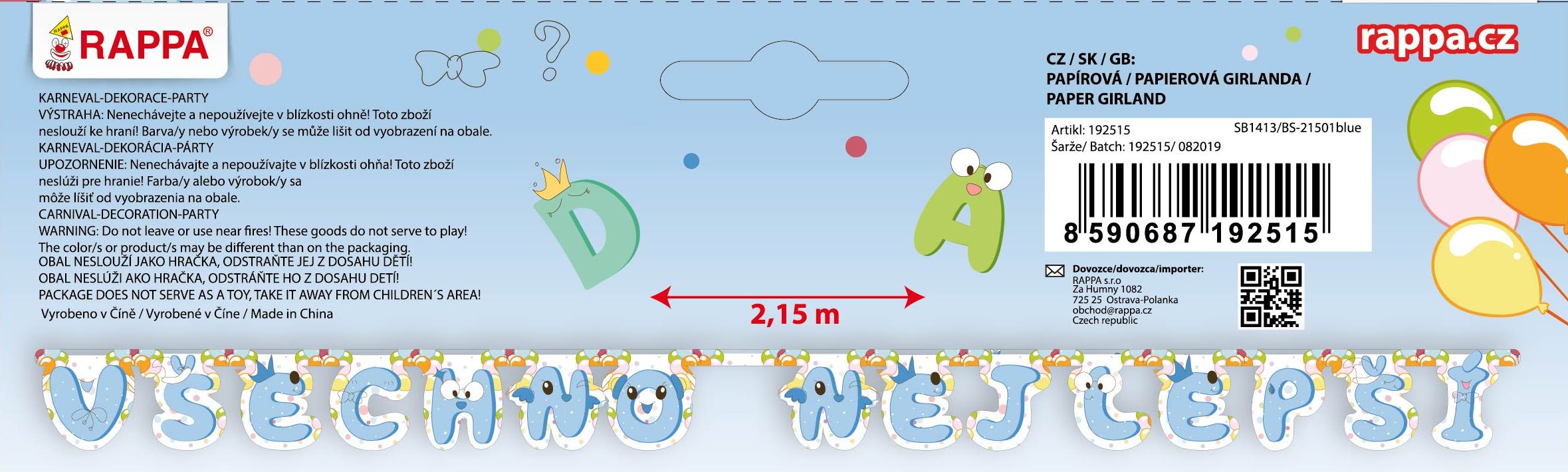 Girlanda papírová VŠECHNO NEJLEPŠÍ chlapecká