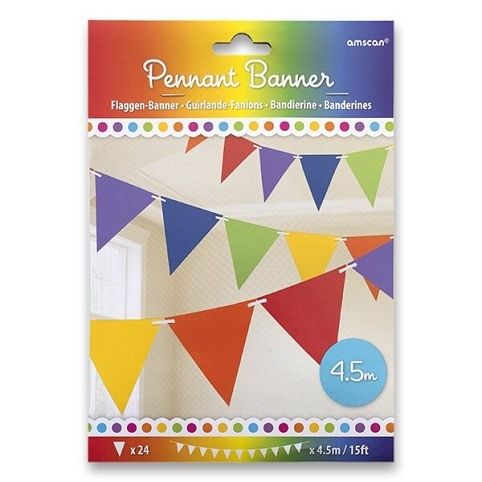 Barevná papírová girlanda ve tvaru trojúhelníku,18 cm x 4,5 m.