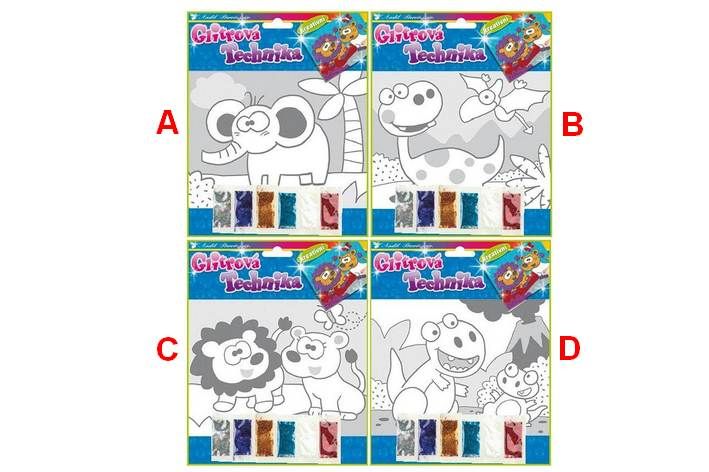 Glitrová technika - dinosauři a zvířátka 25x20,5cm
