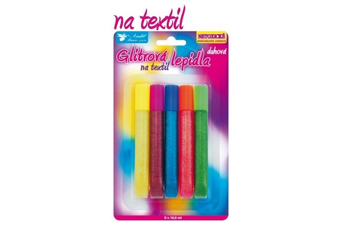 Glitrové lepidlo na textil duhové 5x10,5ml