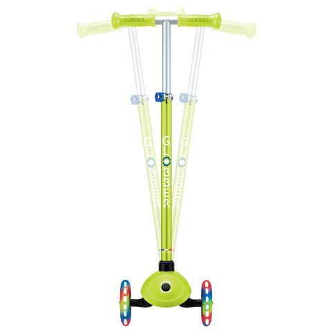 Globber Koloběžka dětská tříkolečková Plus - Primo Plus Lights V2 Lime Green svítící koleč