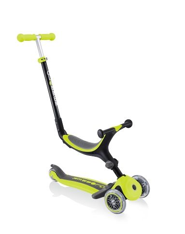 Vše v jednom - koloběžka pro batolata se sedátkem s patentovaným, přizpůsobivým designem se mění z režimu pro děti na jízdu vsedě s rukojetí pro rodiče, odrážedlo a koloběžku. Režimy jízdy na odrážedle a vsedě s rodičovskou rukojetí jsou určeny pro děti ve věku 15 - 36 měsíců a režim koloběžky pro děti ve věku 3 - 7 let.